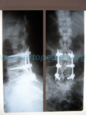 Рентгенограммы поясничного отдела позвоночника после хирургического лечения - транспедикулярной фиксации