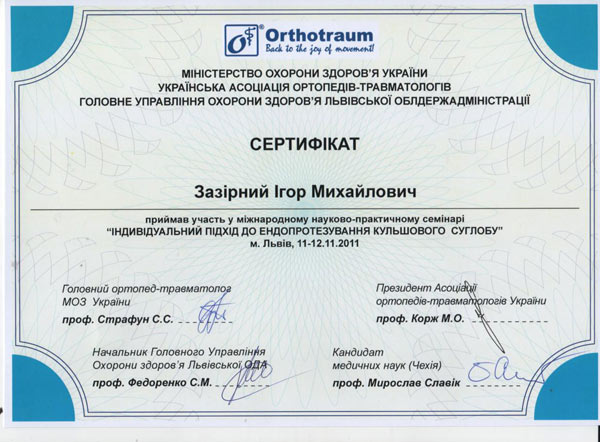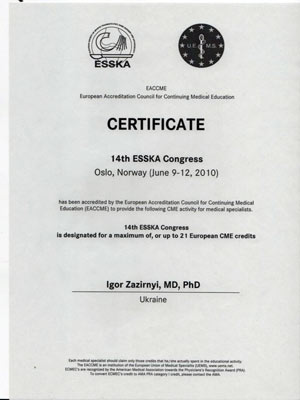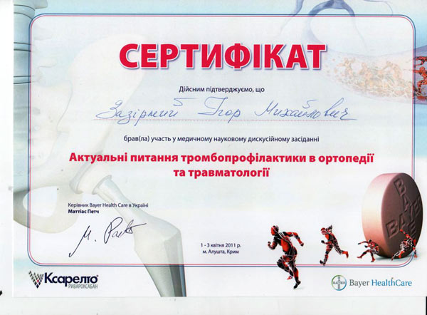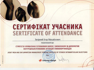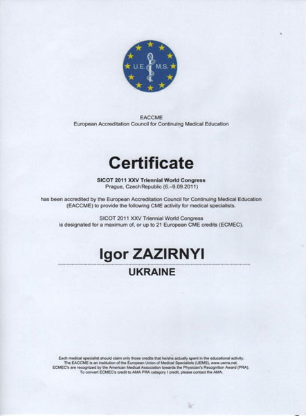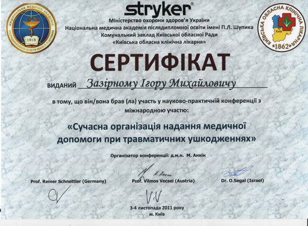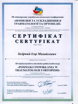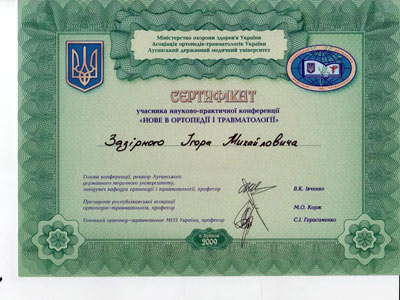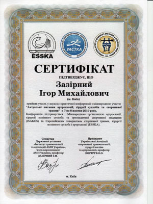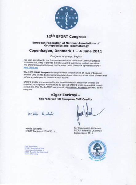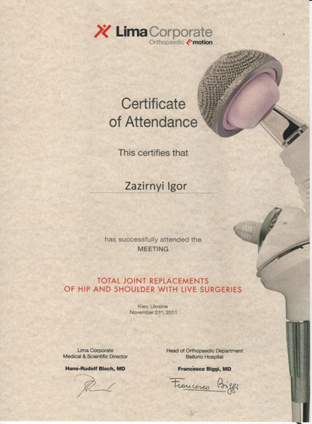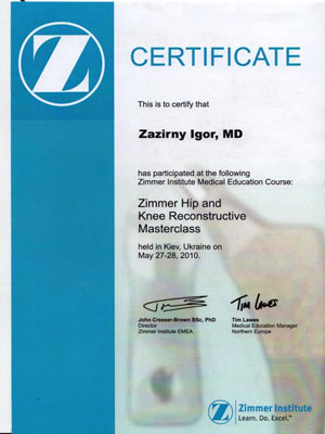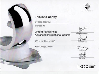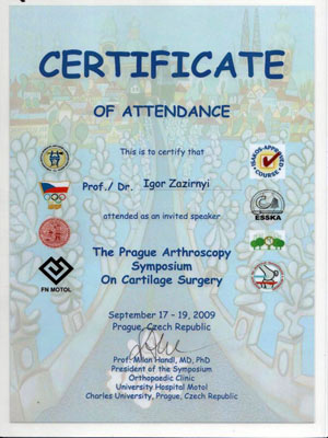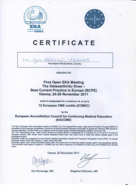 Диплом участника конгресса по протезированию коленного сустава, Австрия